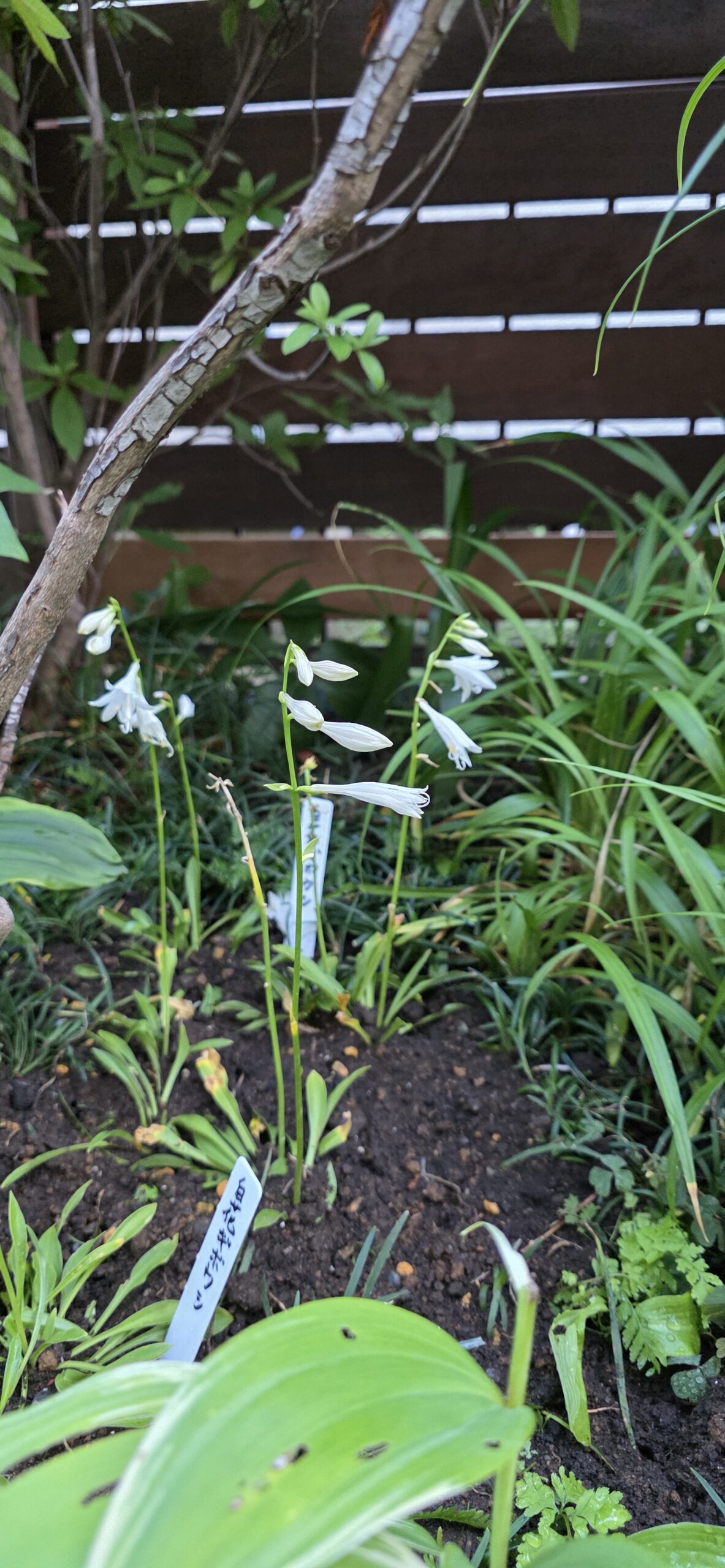 1. こんにちは。普段は植木の剪定や造園工事をしています。今回は山野草の植栽工事で植えた、白花ギボウシの写真を投稿します🌷