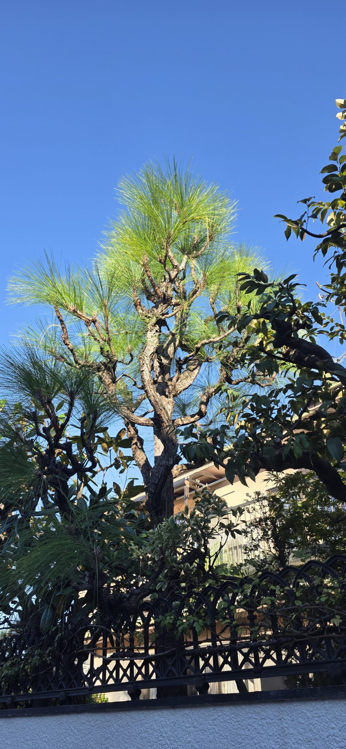 こんにちは。この前神奈川県相模原市で剪定作業をさせてもらった投稿です。かれこれ7年ぐらい剪定をさせてもらってます🌲。少しずつですが私のイメージの木になってきたかな~!今回の写真はダイオウマツです。だいぶ中の芽が出てきてくれたので枝の入れ替えを少しずつやっている最中です。やはり松はイメージどうりに良くするには時間(年数)がかかりますね💦。青空がキレイでしたので一緒に写真撮っちゃいました😃。