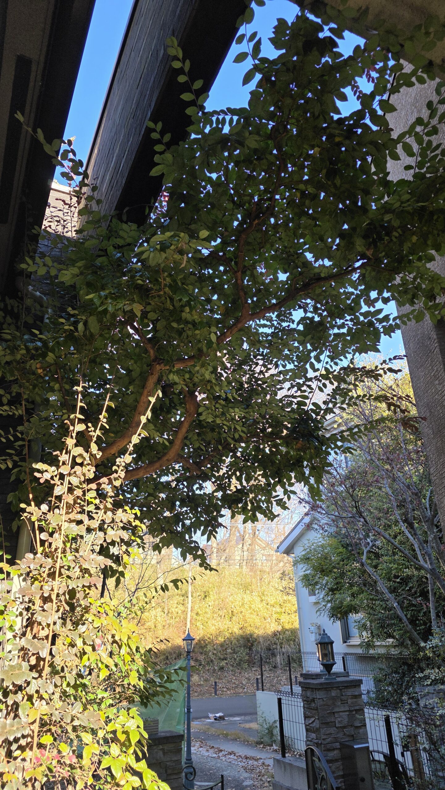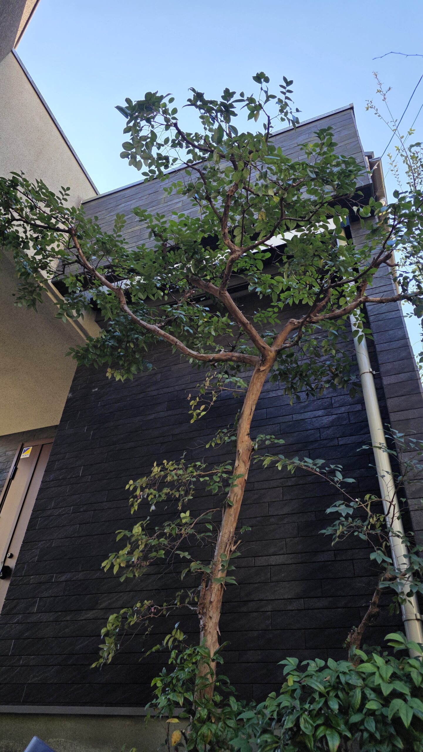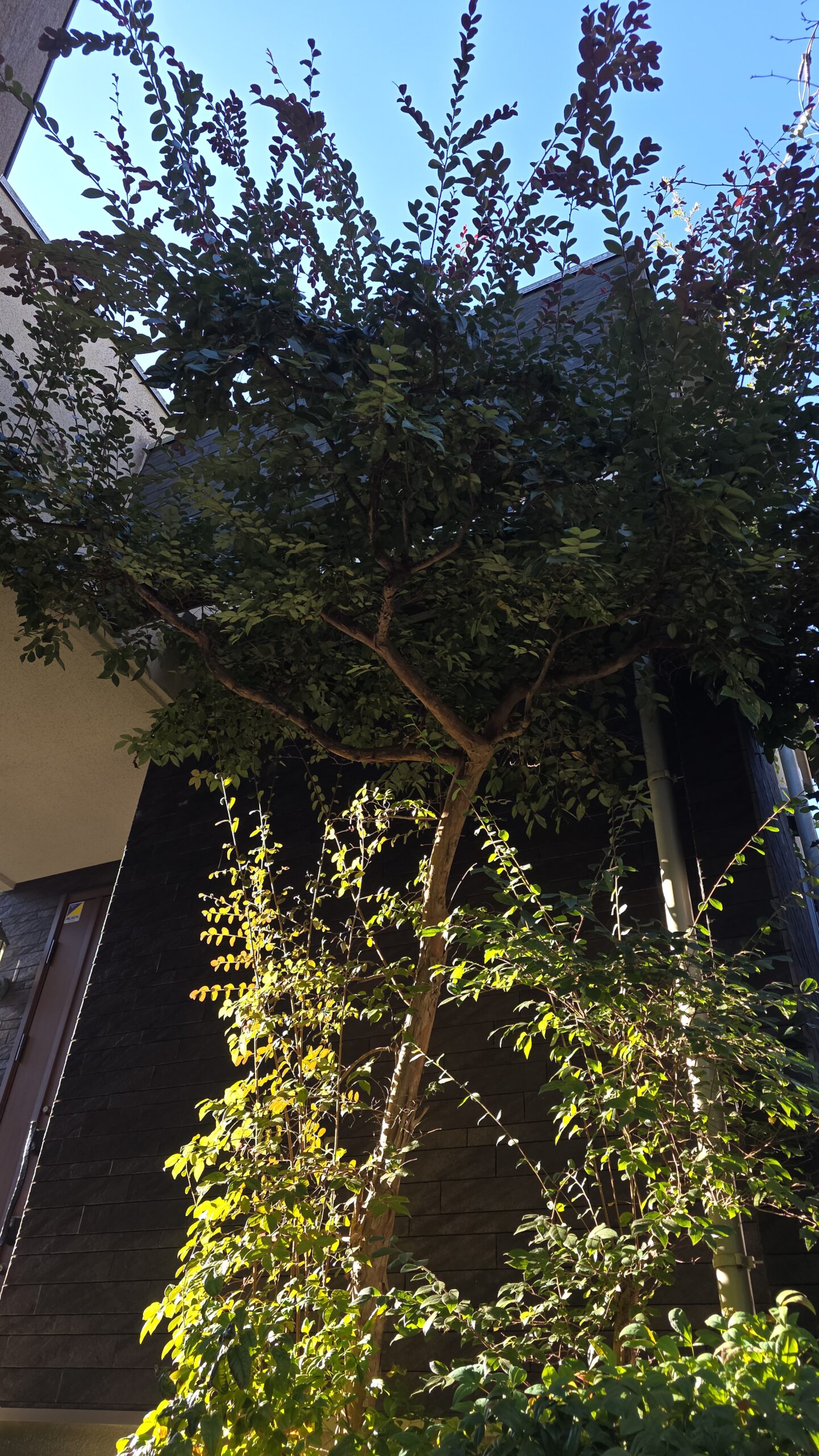 1. こんにちは。今回は植木の剪定の投稿になります。東京都の八王子市で玄関前に植えてあるトキワマンサクの木の剪定をしてきました🌳。今回で8回目ぐらいかと思います。私が初めて行った時は丸く刈り込まれてました。そんなトキワマンサクを自然な姿にしたく、中の枝を抜いて(中を透かせる)面白い枝はのばしては切ってを1年に1度の剪定で作ってきました!ようやく良くなってきたので思わず写真撮らせてもらいました📸✨。